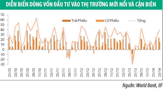 Mặc dù trong năm 2014, việc thu hẹp gói QE3 vẫn tiếp diễn nhưng sẽ được tiến hành một cách từ từ và có lộ trình rõ ràng hơn trước. Do đó, cú sốc đã xảy ra vào giữa năm 2013 khó có thể lặp lại. Theo dự báo của IIF, dòng vốn vào thị trường mới nổi kỳ vọng sẽ có sự hồi phục tích cực trong năm 2014, đặc biệt là vốn đầu tư gián tiếp, trong khi vốn đầu tư trực tiếp duy trì ổn định.