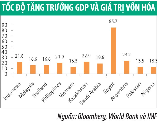 Việt Nam được xếp vào nhóm các thị trường cận biên theo phân loại của MSCI dựa vào một số các tiêu chí. Do đó, để tìm ra lời giải cho câu hỏi “TTCK Việt Nam hấp dẫn như thế nào so với các thị trường khác”, chúng tôi chọn lọc so sánh với một số các thị trường cận biên và mới nổi trong khu vực châu Á và trên thế giới, bao gồm Indonesia, Malaysia, Thailand, Philippines, Nigeria, Kazakhstan, Ả Rập Saudi, Egypt, Argentina, Pakistan.