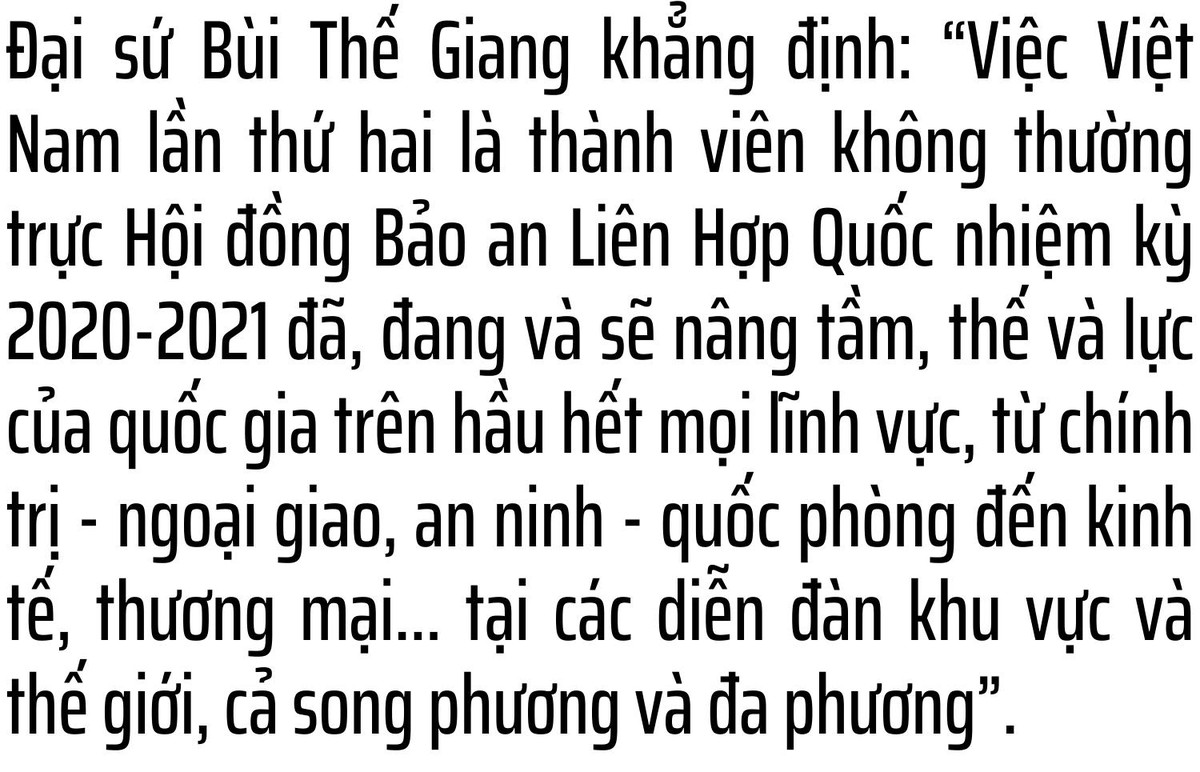 Ngay trong nhiệm kỳ hiện nay, mặc dù đại dịch Covid-19 khiến việc họp hành trực tuyến trở thành phương thức chính yếu, với vai trò Chủ tịch Hội đồng Bảo an Liên Hợp Quốc chỉ trong tháng 4/2021 này, chúng ta phải chủ trì khoảng 30 cuộc họp cấp đại sứ, với 12 nội dung lớn liên quan tới tất cả các khu vực trên thế giới.