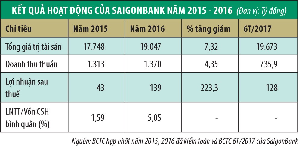 Hoạt động kinh doanh chính của SaigonBank là huy động vốn ngắn hạn, trung hạn và dài hạn với các hình thức tiền gửi có kỳ hạn, không kỳ hạn, chứng chỉ tiền gửi. Lợi nhuận sau thuế của SaigonBank năm 2016 tăng trưởng khá tốt so với năm 2015 với mức tăng trưởng đạt 223,3%. Lợi nhuận sau thuế của 6 tháng 2017 cũng đã đạt gần bằng mức lợi nhuận của cả năm 2016.