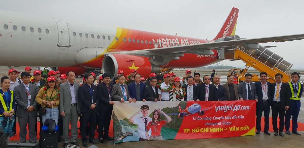 Lễ khai trương đường bay diễn ra tưng bừng tại sân bay quốc tế Vân Đồn. Trên chuyến bay khai trương, hành khách bất ngờ nhận được những quà tặng thú vị từ Vietjet.