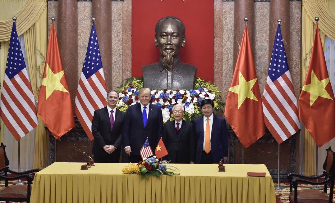 Tổng giám đốc Vietjet, bà Nguyễn Thị Phương Thảo và ông Kevin McAllister, Chủ tịch kiêm Giám đốc điều hành của Tập đoàn Boeing đã cùng ký kết hợp đồng mua máy bay trước sự chứng kiến của Tổng Bí thư, Chủ tịch nước Nguyễn Phú Trọng và Tổng thống Mỹ Donald Trump.
