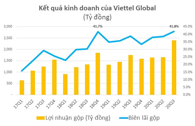Lũy kế 9 tháng đầu năm, Viettel Global đạt 14.351 tỷ đồng doanh thu hợp nhất, tăng 16% so với cùng kỳ. Do tối ưu chi phí nên lãi gộp tăng 25% lên 5.658 tỷ đồng.