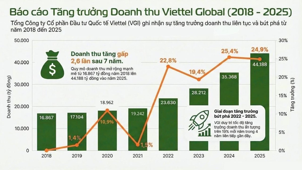 Với kết quả kinh doanh tăng trưởng mạnh cùng chiến lược mở rộng sang công nghệ và dịch vụ số, Viettel Global tiếp tục khẳng định vị thế là doanh nghiệp đầu tư quốc tế hàng đầu của Việt Nam, đồng thời tạo nền tảng tài chính và vận hành cho giai đoạn phát triển dài hạn trong những năm tới.