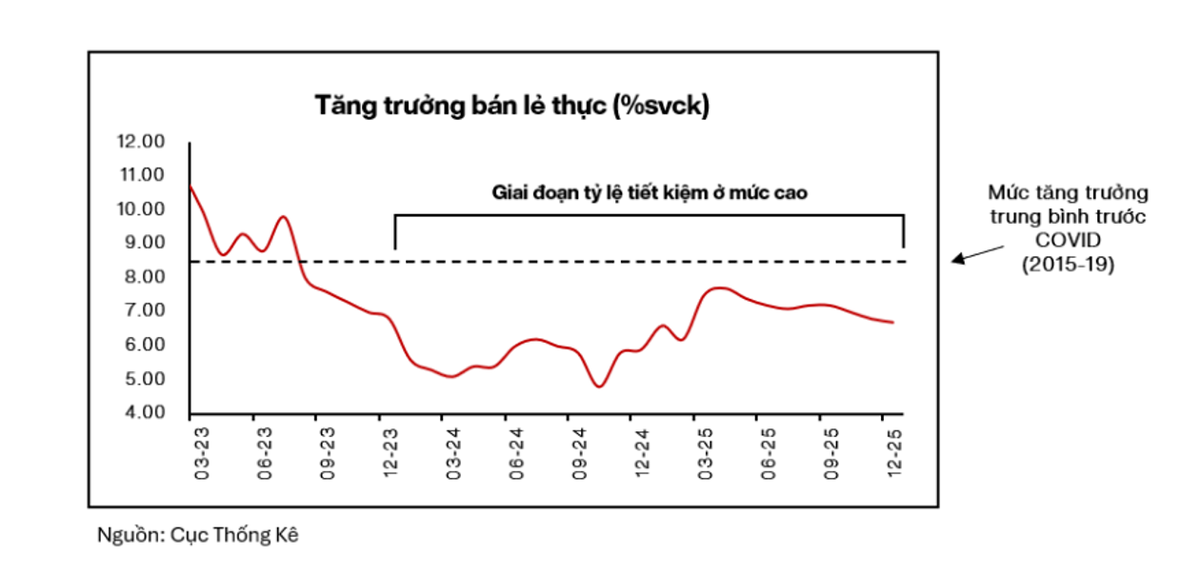 Theo ông Michael, sức tiêu dùng sẽ quay trở lại mức tăng trưởng bình ổn vào khoảng giữa năm 2026, dù khó có khả năng xảy ra sự bùng nổ đột biến. Nguyên nhân là tỷ lệ tiết kiệm của người dân đã duy trì ở mức cao trong những năm hậu Covid. Điều này giúp các hộ gia đình có đủ thời gian để củng cố nguồn tích lũy so với giai đoạn trước đại dịch và mở ra dư địa chi tiêu mạnh mẽ trở lại trong năm nay.