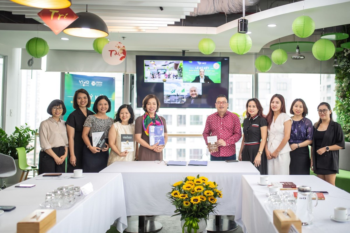 Bà Hà Thu Thanh, Chủ tịch Viện Thành viên Hội đồng Quản trị Việt Nam (VIOD) và ông Nguyễn Cảnh Bình – Chủ tịch Công ty cổ phần sách Alpha (Alpha Books) ký Thỏa thuận hợp tác giữa VIOD và Alpha Books