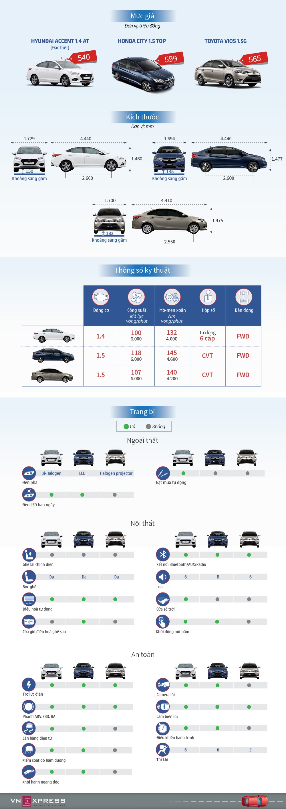 Theo Vnexpress Tin liên quan Hyundai Accent 2018 giá từ 12.500 USD 23/08/2017 10:14 Honda City 2017 thêm bản hybrid, cạnh tranh Toyota Vios 23/07/2017 09:35 Sát Tết, Toyota đồng loạt giảm giá Camry, Vios 30/01/2018 15:03 Honda City 2017 - thay đổi để 'chiến đấu' cùng Vios ở Việt Nam 21/09/2017 14:19 Từ khóa Hyundai Accent Toyota Vios Honda City giá Toyota Vios Accent 2018