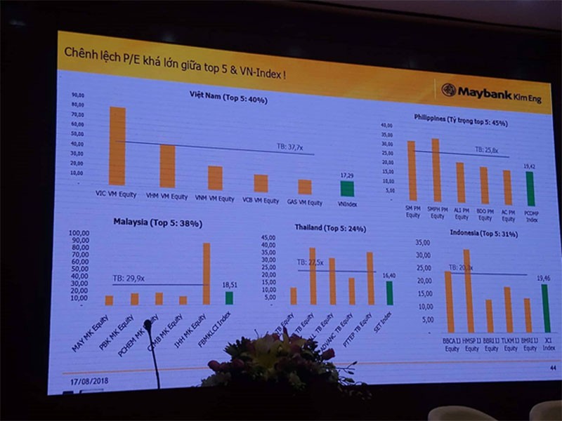 Tuy nhiên, nhiều ý kiến cũng cho rằng, mức PE của Việt Nam chịu ảnh hưởng mạnh mẽ từ top những cổ phiếu vốn hóa lớn nên có thể không phản ánh đúng.