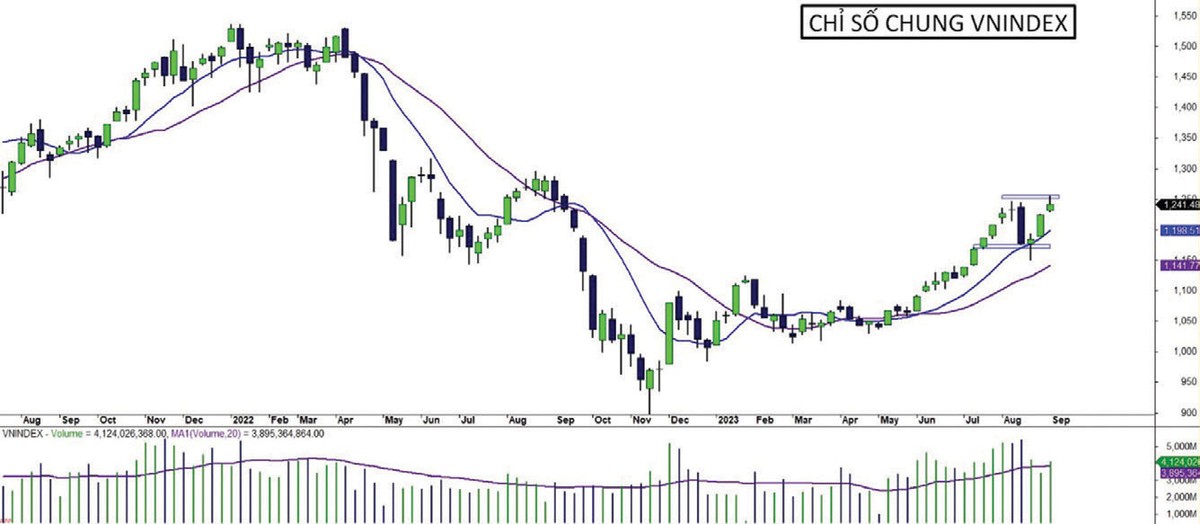 Trên phương diện kỹ thuật, xu hướng tích cực trung hạn được giữ vững. Áp lực cung không đáng kể, thị trường vẫn ghi nhận đà xanh điểm và neo trên vùng “khoảng trống” tăng giá. Trạng thái điều chỉnh nhẹ gần đây là cần thiết khi chỉ số đã ghi nhận đà phục hồi “không nghỉ”, giúp kiểm chứng vị thế giao dịch ngắn hạn để củng cố xu hướng lớn. Tạm thời, dòng tiền ngắn hạn chưa sẵn sàng vượt đỉnh, dẫn đến xu hướng tuần này được kỳ vọng tích lũy trở lại trong biên độ hẹp quanh 1.220 - 1.245 điểm.