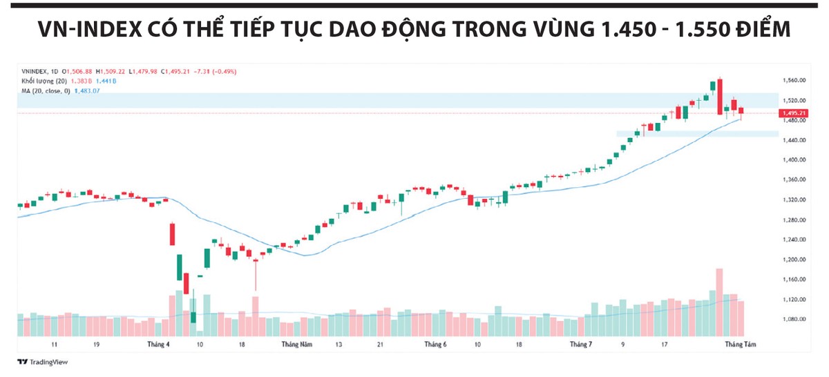 Tuần này, dự báo VN-Index tiếp tục giằng co trong vùng 1.450 - 1.550 điểm. Tâm lý nhà đầu tư vẫn thận trọng, cần thêm thời gian để đánh giá tác động từ các yếu tố bên ngoài, đặc biệt là xu hướng bán ròng gia tăng của khối ngoại trong nhiều phiên gần đây. Ở chiều tích cực, thông tin vĩ mô trong nước đóng vai trò hỗ trợ, nhưng lực cầu hiện tại chưa đủ mạnh để xác lập xu hướng rõ ràng. Về mặt kỹ thuật, VN-Index đang kiểm định lại vùng hỗ trợ 1.490 - 1.495 điểm. Nếu giữ được vùng này, chỉ số có thể hồi phục trở lại vùng 1.510 điểm. Ngược lại, nếu dòng tiền suy yếu, chỉ số có thể điều chỉnh về vùng 1.450 - 1.470 điểm.