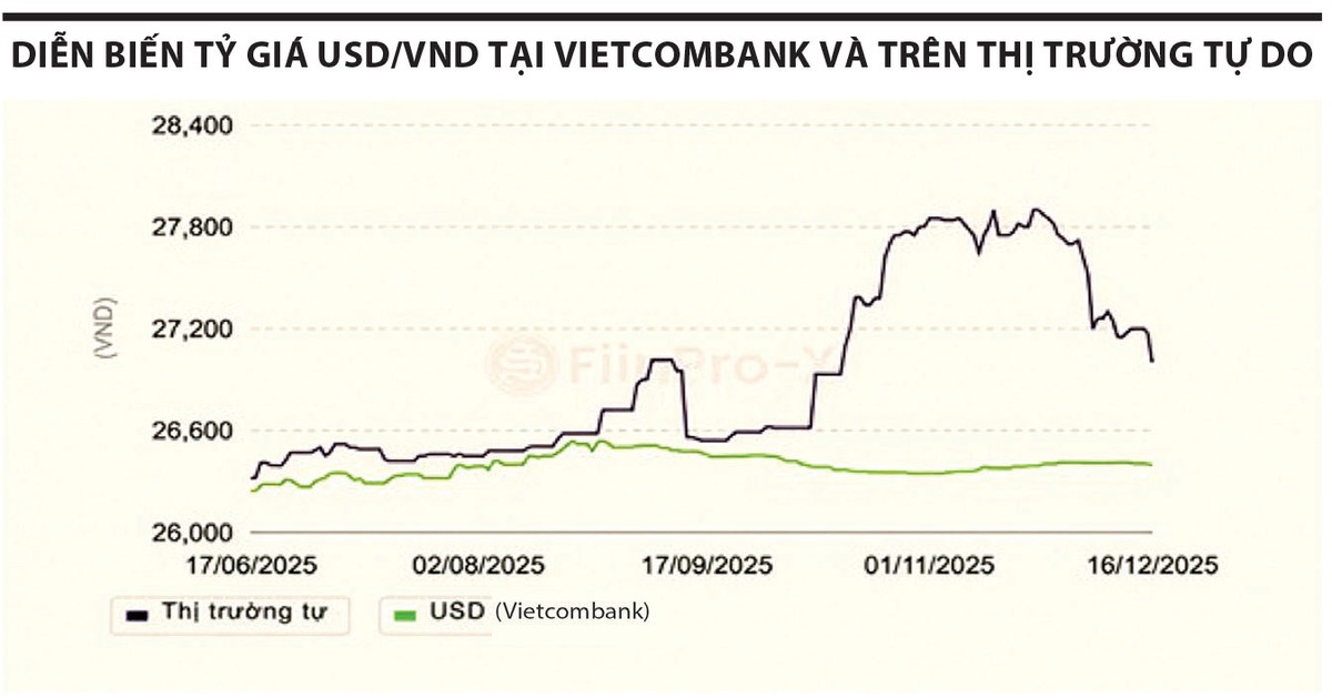 Thời gian gần đây, thị trường ngoại hối Việt Nam ghi nhận những tín hiệu ổn định hơn khi tỷ giá trung tâm do Ngân hàng Nhà nước công bố, cũng như tỷ giá bán USD tại Vietcombank, nhìn chung duy trì trạng thái đi ngang. Diễn biến này cho thấy, áp lực lên thị trường ngoại hối chính thức đã phần nào được kiểm soát, dù bối cảnh quốc tế vẫn tiềm ẩn nhiều yếu tố bất định. Trên thị trường tự do, tỷ giá USD/VND tuy vẫn neo ở vùng cao so với giai đoạn trước, song mức độ căng thẳng đã giảm đáng kể, phản ánh sự cải thiện trong kỳ vọng cung - cầu ngoại tệ.