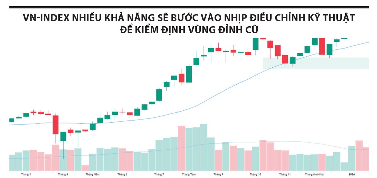 Trong bối cảnh tâm lý thận trọng trước kỳ nghỉ lễ và áp lực tại vùng cản mạnh, khả năng thị trường sẽ xuất hiện nhịp điều chỉnh trong tuần này là tương đối cao. Tuy nhiên, nhịp điều chỉnh nếu diễn ra được kỳ vọng chủ yếu mang tính kỹ thuật và tái cân bằng cung - cầu, với áp lực tập trung ở nhóm trụ, trong khi các nhóm còn lại có thể duy trì trạng thái ổn định hơn.