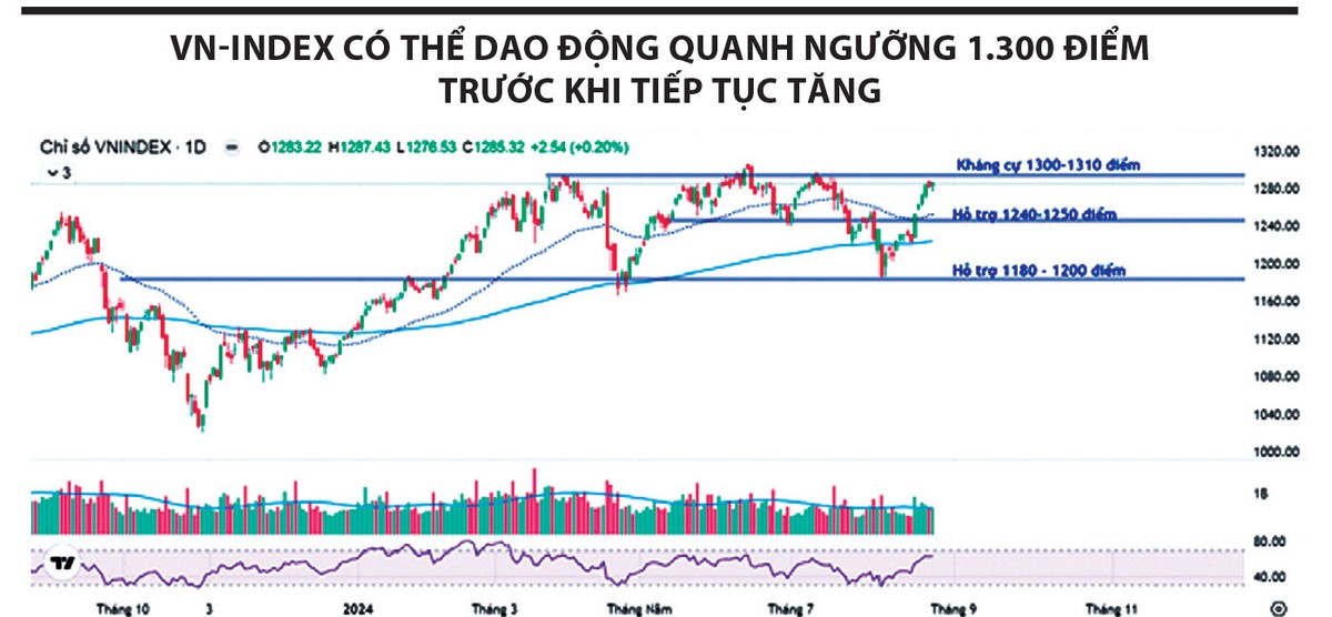 Yếu tố cơ bản của nền kinh tế được cải thiện đã củng cố niềm tin của nhà đầu tư với chính sách thúc đẩy đầu tư công, khả năng nâng hạng thị trường chứng khoán... Vì vậy, VN-Index được kỳ vọng sẽ tiếp tục có những diễn biến tích cực, dù có thể xuất hiện các nhịp giằng co quanh ngưỡng 1.300 điểm. Khi giai đoạn giằng co kết thúc, chỉ số có triển vọng trở lại xu hướng tăng.