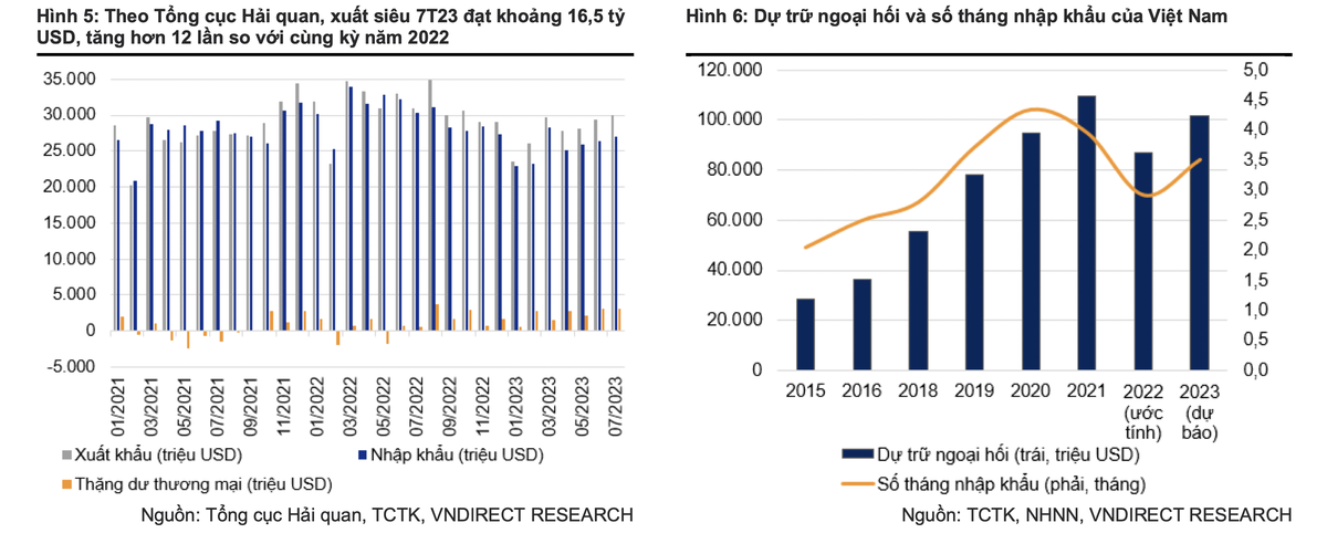 "Nhìn chung, chúng tôi cho rằng tỷ giá có thể biến động mạnh hơn trong nửa sau năm 2023, tuy nhiên, tỷ giá USD/VND sẽ dao động không quá +/- 2,0% so với đầu năm 2023", Báo cáo VNDirect nhận định.