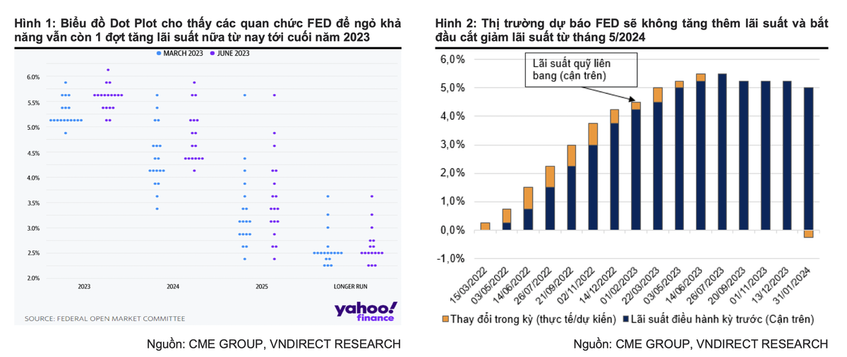 Thứ nhất, chênh lệch lãi suất giữa VND và USD tiếp tục thu hẹp do lãi suất điều hành của FED có thể duy trì ở vùng đỉnh đến cuối năm 2023 để kiềm chế lạm phát, trong khi NHNN định hướng tiếp tục hạ lãi suất để hỗ trợ tăng trưởng;