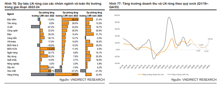 Sang năm 2023, lợi nhuận ròng toàn thị trường dự kiến sẽ tăng nhẹ 5% so với cùng kỳ trong nửa đầu năm, sau đó cải thiện hơn trong nửa cuối năm 2023, đưa mức tăng trưởng cả năm lên 14%.