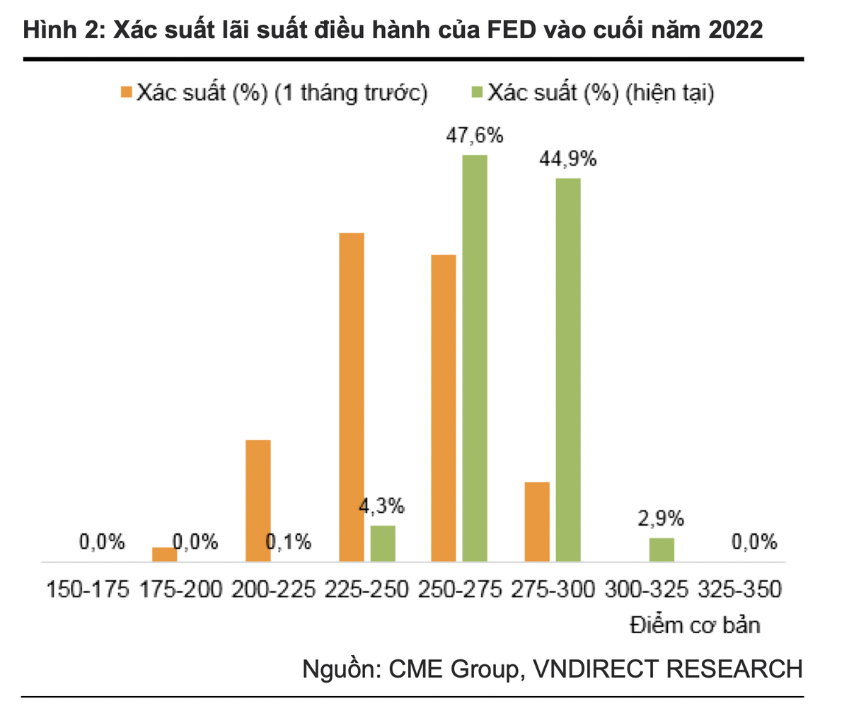 Theo khảo sát của CME Group, thị trường cho rằng FED có thể nâng lãi suất điều hành thêm 175- 200 điểm cơ bản trong những tháng cuối năm 2022 lên biên độ mới trong khoảng 2,5% đến 3,0%.