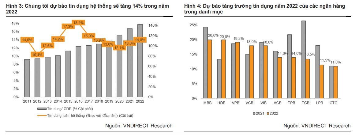 Các chuyên gia của VNDirect thận trọng với triển vọng ngắn hạn do những lo ngại về chi phí vốn tăng và tăng trưởng tín dụng hạn chế. Tuy nhiên về dài hạn, các ngân hàng vẫn có thể tăng trưởng lợi nhuận mạnh mẽ ở mức 31%/15% trong giai đoạn 2022-2023 nhờ được hỗ trợ bởi chất lượng tài sản vững chắc, thu nhập từ phí cải thiện và tỷ lệ chi phí tín dụng giảm mạnh.