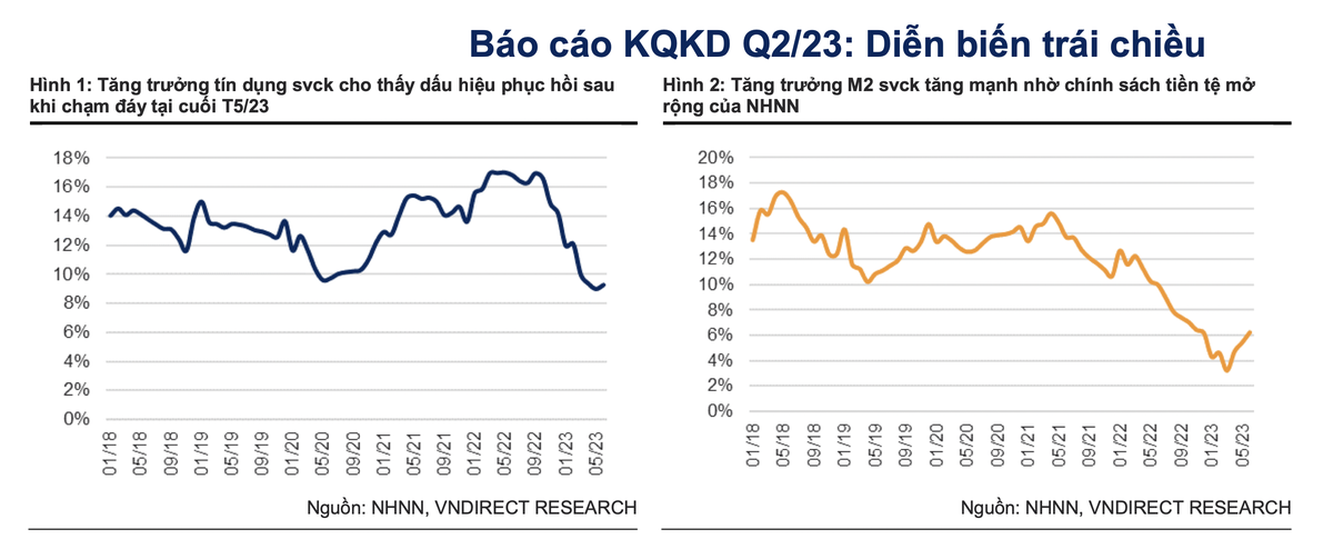 Theo VNDirect, tại cuối quý II/2023, tín dụng toàn hệ thống tăng 4,7% so với đầu năm - thấp hơn mức tăng 9,4% tại cuối quý II/2022, nhưng đã tăng đáng kể từ mức 3,17% tại cuối tháng 5/2023.