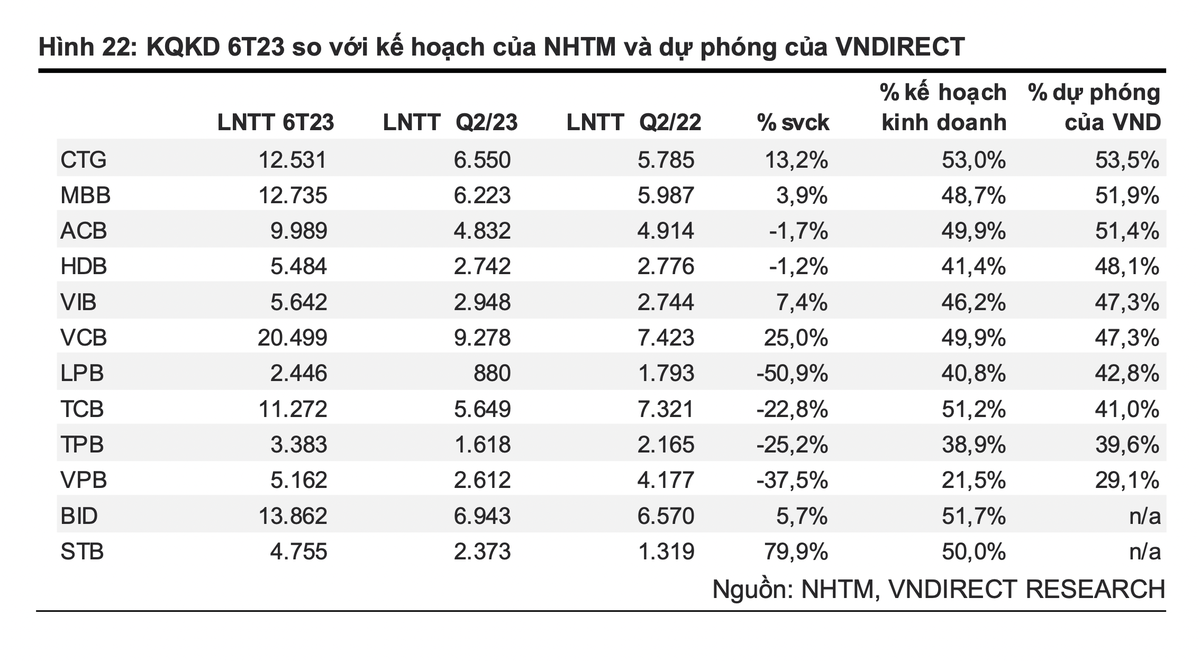 Nửa cuối năm, bên cạnh dư địa tín dụng còn lại, VNDirect kỳ vọng những ngân hàng có tỷ lệ cao về cho vay bán lẻ như VIB, ACB có nhiều cơ hội để cải thiện tăng trưởng tín dụng khi Việt Nam đang dần bước vào giai đoạn phục hồi ban đầu. Ngược lại, những ngân hàng có tỷ lệ cho vay bất động sản cao có thể sẽ gặp khó khăn trong việc mở rộng tín dụng khi Thông tư 06/2023 (hiệu lực từ tháng 9/2023) sẽ giới hạn khả năng tiếp cận vốn của các doanh nghiệp.