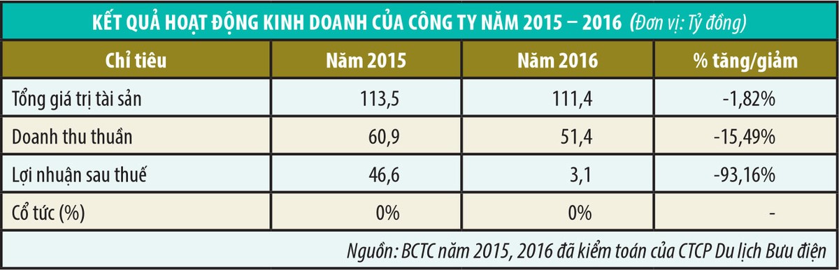 Theo kết quả thẩm định giá trị doanh nghiệp, tổng giá trị tài sản của CTCP Du lịch Bưu điện được xác định là 194,66 tỷ đồng, nợ phải trả là 14,67 tỷ đồng, giá trị doanh nghiệp còn lại là 179,99 tỷ đồng; trong đó tiền mặt và các khoản đầu tư ngắn hạn là 66 tỷ đồng.