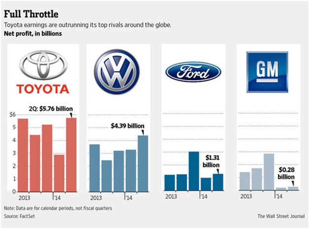 Toyota vẫn dẫn đầu sau nửa năm 2014 nhưng bị bám đuổi sát sao bởi Volkswagen