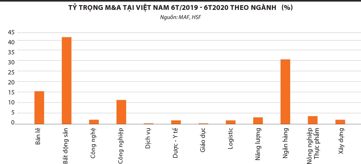 Hoạt động M&A tại Việt Nam cũng như trên toàn cầu đều giảm mạnh do các nhà đầu tư có những phản ứng thận trọng, đồng thời những điều kiện về cách ly trên toàn cầu gây trở ngại cho việc tìm hiểu, đánh giá và ra quyết định. Dự kiến, giá trị M&A năm 2020 tiếp tục suy giảm, ước đạt 3,5 tỷ USD (bằng 48,6% so với 2019).