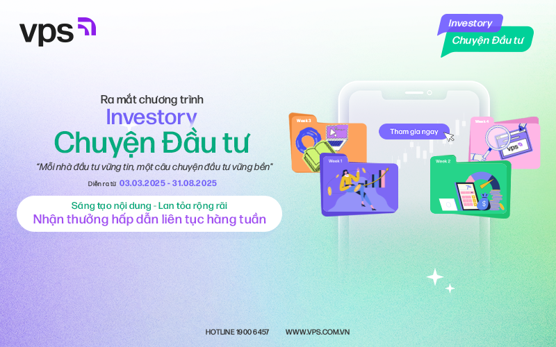 Tham gia chương trình “Investory - Chuyện Đầu Tư”, nhà đầu tư sẽ được cung cấp các thông tin “nóng” nhất về thị trường đầu tư tài chính – chứng khoán, học hỏi những kiến thức đầu tư bền vững, chia sẻ những câu chuyện đầu tư truyền cảm hứng và kết nối với cộng đồng đầu tư văn minh. Đặc biệt, VPS sẽ dành tặng cho các khách hàng tham gia những phần thưởng hấp dẫn được trao liên tục hàng tuần.