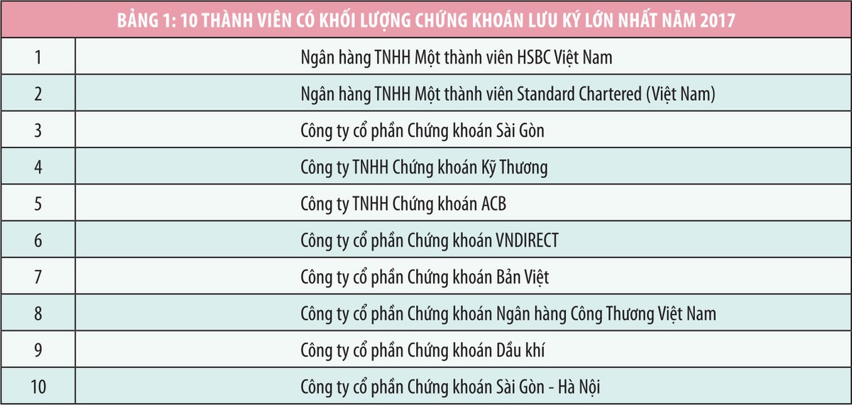 Tại ngày 30/11/2017, số lượng chứng khoán lưu ký tại VSD là 64 tỷ chứng khoán, chiếm hơn 56% số lượng chứng khoán đăng ký. Trong đó, số lượng chứng khoán lưu ký phát sinh trong kỳ đạt hơn 14 tỷ chứng khoán, tăng 19,5% so với cùng kỳ.