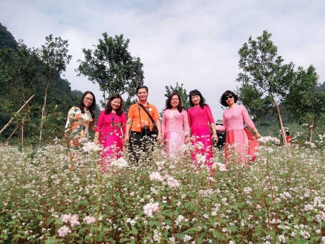 Trước Ninh Bình, nhiều địa phương khác cũng đã trồng thành công hoa tam giác mạch như Lạng Sơn, Đà Lạt, Mộc Châu... Tại đâu, loài hoa này cũng tạo được cơn sốt với du khách chưa có dịp đến mảnh đất cao nguyên đá Hà Giang. Ảnh: Hung Hoang.