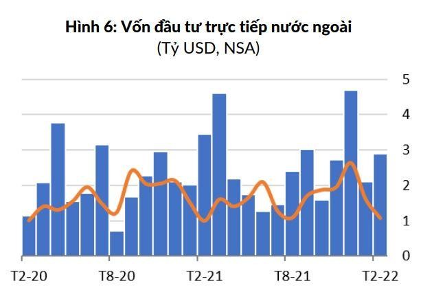 Điểm đáng chú ý là ngân sách nhà nước tiếp tục thặng dư, trong khi tiến độ thực hiện các dự án đầu tư công được cải thiện. Cân đối ngân sách nhà nước ghi nhận thặng dư 1,1 tỷ USD trong tháng 2 và 4,2 tỷ USD trong 2 tháng đầu năm 2022. Thu ngân sách tháng 2 tăng 5,3% so với cùng kỳ năm trước, trong khi chi ngân sách tăng 6,1% so với cùng kỳ năm trước nhờ cải thiện tình hình thực hiện chương trình đầu tư công.