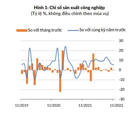 Thực chất, chỉ số sản xuất công nghiệp phục hồi từ mức -1,8% trong tháng 10/2021 (so cùng kỳ) lên 8,2% trong tháng 11/2021 (so cùng kỳ) khi quốc gia mở cửa lại sau giai đoạn giãn cách COVID-19 kéo dài. Ngoài ra, sức cầu bên ngoài yếu đi cũng là một yếu tố đóng góp quan trọng, khi nhu cầu của các thị trường xuất khẩu chủ lực đã và đang suy giảm.
