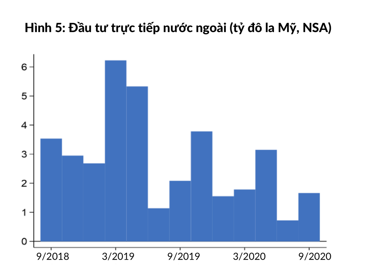 Giá trị vốn đầu tư trực tiếp nước ngoài (FDI) hồi phục trong tháng 9, tăng từ mức 720 triệu USD trong tháng 8 lên đến 1,65 tỷ USD. Trong 9 tháng đầu năm 2020, tổng số vốn FDI cam kết giảm khoảng 19% so với cùng kỳ năm 2019 – đây vẫn là kết quả rất tích cực trong bối cảnh dòng vốn FDI toàn cầu dự đoán giảm từ 30-40% theo dự báo mới nhất của UNCTAD.