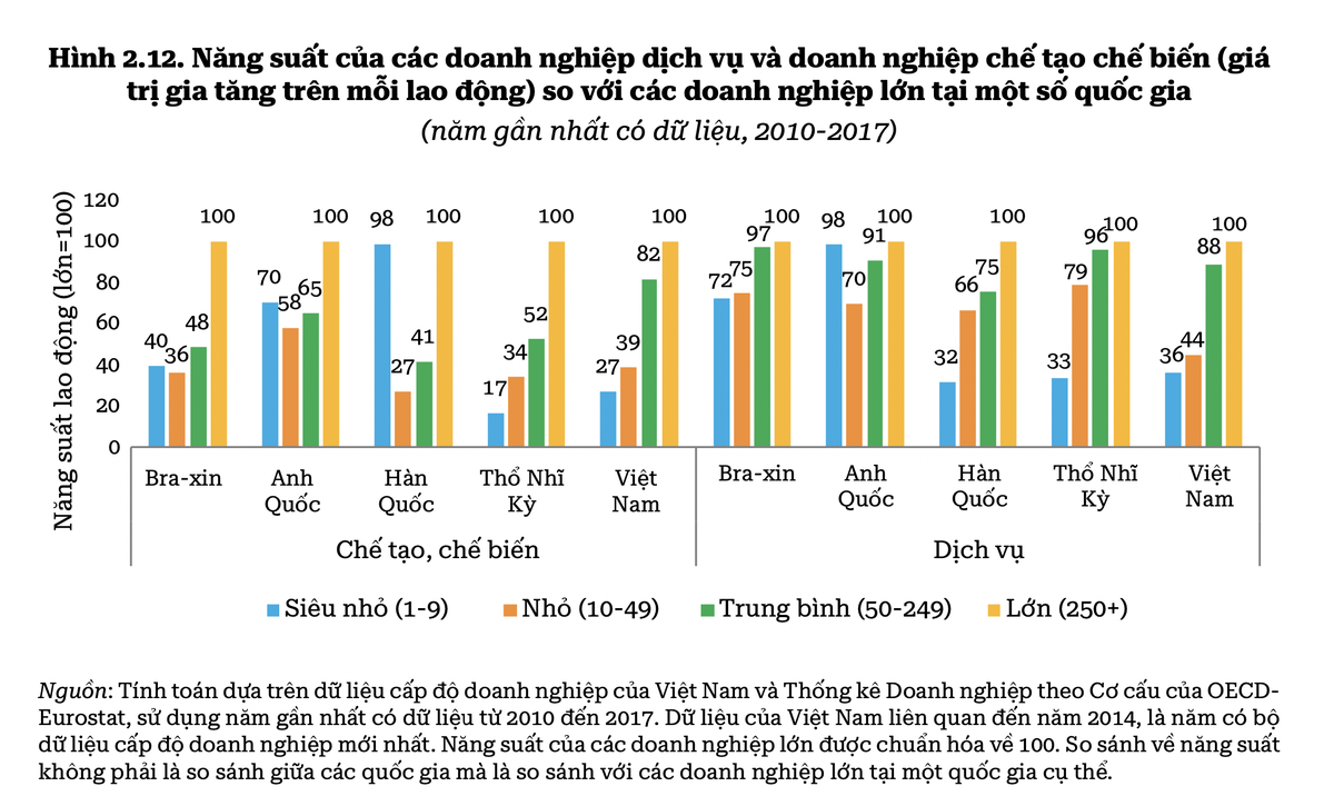 Nguyên nhân ảnh hưởng đến năng suất bao gồm quy mô doanh nghiệp còn nhỏ, những rào cản về thương mại dịch vụ, tỷ lệ áp dụng công nghệ thấp, thiếu kết nối với các ngành, lĩnh vực khác, cho thấy còn nhiều điều cần được cải thiện thông qua các hành động chính sách phù hợp.