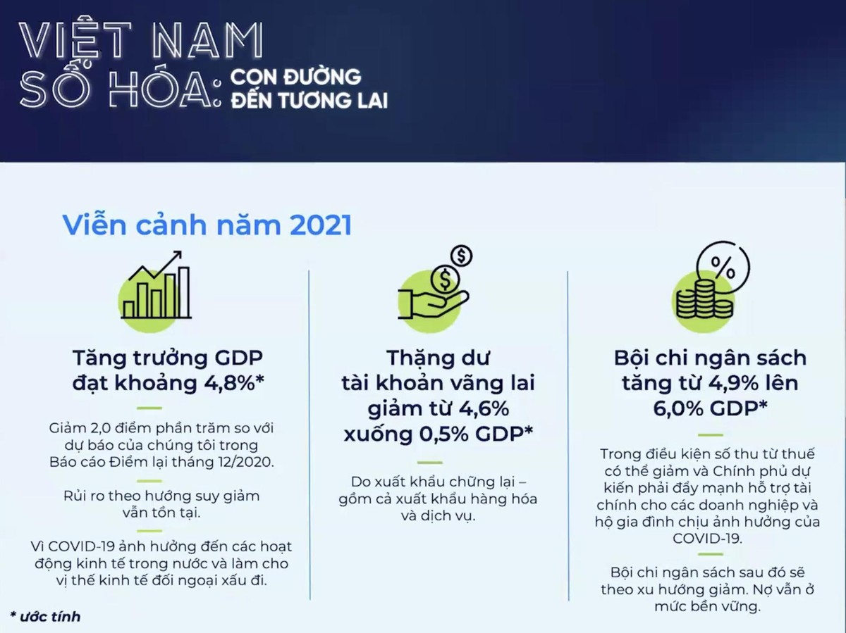 WB nhận định, khi thế giới phục hồi sau khủng hoảng COVID-19, rõ ràng chuyển đổi số sẽ đóng vai trò ngày càng quan trọng trong nền kinh tế toàn cầu. Các quốc gia đã và đang cạnh tranh trên phạm vi toàn cầu để có uy thế về công nghệ số và Chính phủ Việt Nam đã thể hiện rõ mong muốn được tham gia cuộc đua bằng cách coi chuyển đổi số là một trong những mục tiêu trọng tâm trong Chiến lược phát triển kinh tế - xã hội giai đoạn 2021 - 2030.