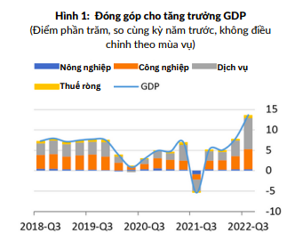 Cụ thể, tăng trưởng GDP của Việt Nam trong quý 3/2022 đạt 13,7% so cùng kỳ năm trước. Tốc độ tăng trưởng cao kỷ lục trên phần nào là nhờ hiệu ứng xuất phát điểm thấp do nền kinh tế bị suy giảm 6% trong quý 3/2021 sau các đợt cách ly kéo dài nhằm kiềm chế đại dịch COVID-19.