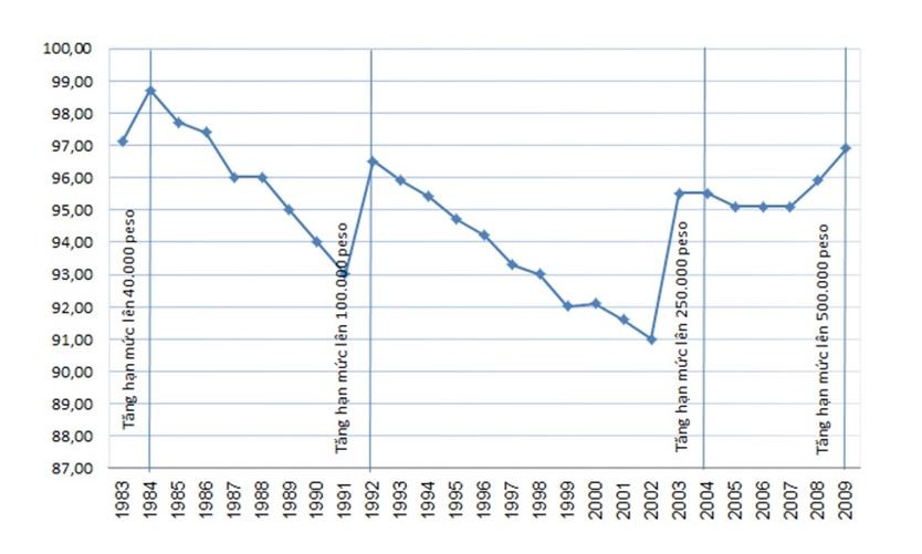 Bên cạnh đó, trong lịch sử các lần điều chỉnh hạn mức kể từ năm 1983 trở lại đây, tỷ lệ tài khoản tiền gửi được bảo hiểm toàn bộ tại Philippines đều cao hơn 90%. Khi tỷ lệ này có xu hướng giảm đi, Chính phủ nước này đều có chính sách nâng hạn mức BHTG nhằm tăng tỷ lệ bảo vệ tài khoản tiền gửi của người gửi tiền.