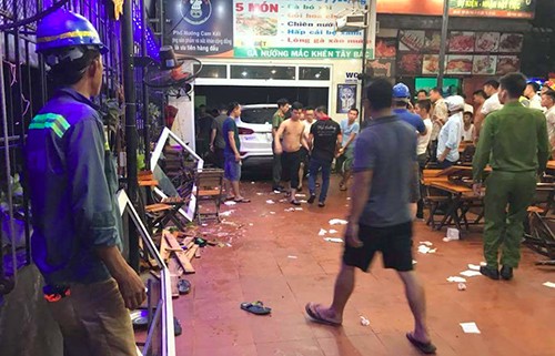 Tại hiện trường, ôtô nghiền nát nhiều bàn ghế và bát đũa, tủ kính trong quán nhậu. Ôtô bị hư hỏng nhẹ phần đầu. Xung quanh nhiều mảnh vỡ bung ra, vệt dầu và vết máu loang lổ.