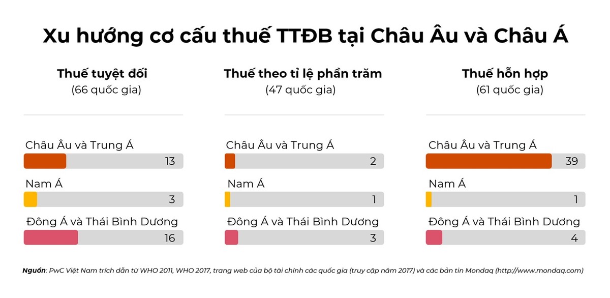 Một trong những nội dung chính được sửa đổi là tăng thuế suất thuế TTĐB đối với thuốc lá và bổ sung áp dụng thuế tuyệt đối bên cạnh thuế tỷ lệ phần trăm hiện hành. Bước tiến này được các chuyên gia đánh giá cao vì Tổ chức Y tế Thế giới (WHO) đã khuyến nghị các quốc gia, trong đó có Việt Nam nên triển khai hệ thống thuế đơn giản và hiệu quả nhất là hệ thống thuế tuyệt đối hoặc hỗn hợp vì các hệ thống thuế này có nhiều ưu điểm hơn so với hệ thống thuế tương đối đơn thuần.