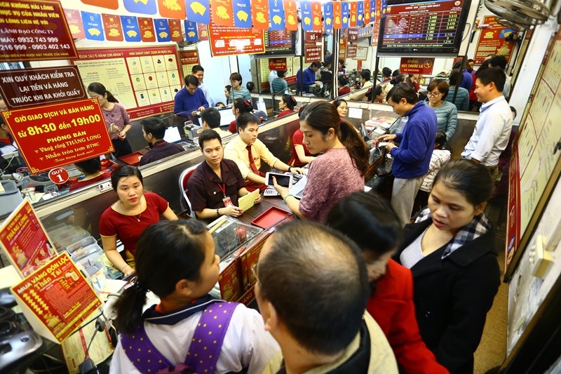 Ngay từ chiều nay (5/2), tại các cửa hiệu vàng đã có rất đông người đến mua vào