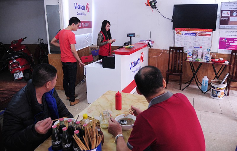 Chính thức mở bán vào lúc 9h sáng, khách hàng chen chân mua xổ số Vietlott tại đại lý trên đường Nguyễn Chí Thanh