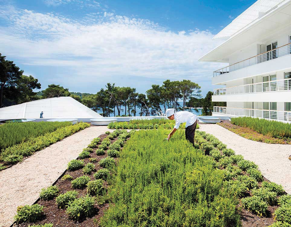 Tại khách sạn Bellevue ở Cikat (Croatia), phần mái bằng được chuyển thành một khu vườn thảo mộc xanh mướt và phảng phất hương thơm. Tại đây, vào buổi sáng sớm, các vị khách có thể ngắm nhìn nhân viên nhà bếp hái các loại thảo mộc dùng cho món salad của nhà hàng trong khách sạn.