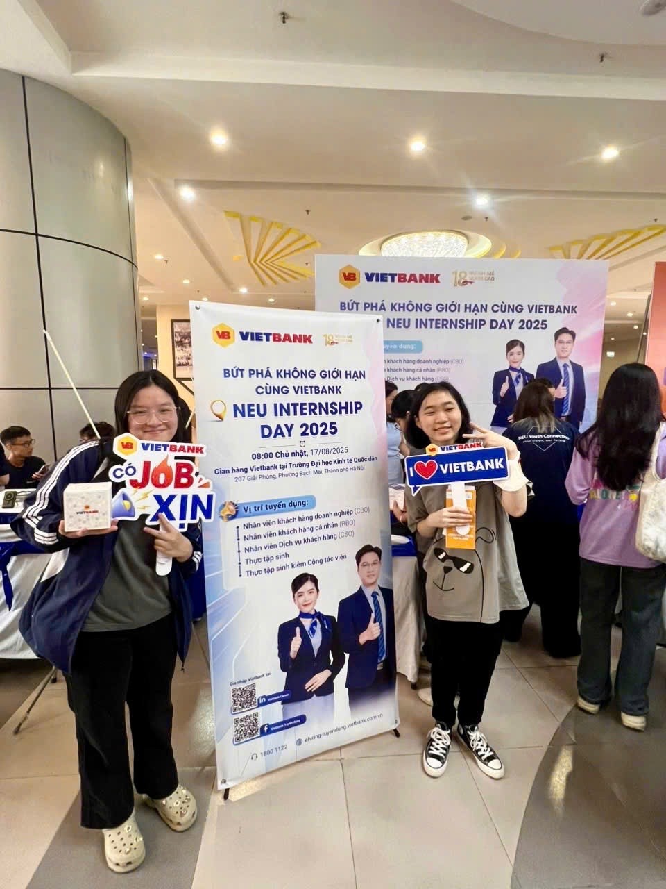 Với mục tiêu Xây dựng chiến lược dài hạn thông qua các hoạt động nhằm nâng cao Thương hiệu Nhà Tuyển dụng, ngày 17/08/2025 Vietbank đã đồng hành cùng “Ngày hội Thực tập sinh – NEU Internship Day 2025” tại Đại học Kinh tế Quốc dân Hà Nội. Sự kiện thu hút hàng trăm sinh viên tham gia ứng tuyển vị trí nhân viên chính thức và thực tập sinh ở khu vực Hà Nội, nơi Vietbank có các chi nhánh và phòng giao dịch.