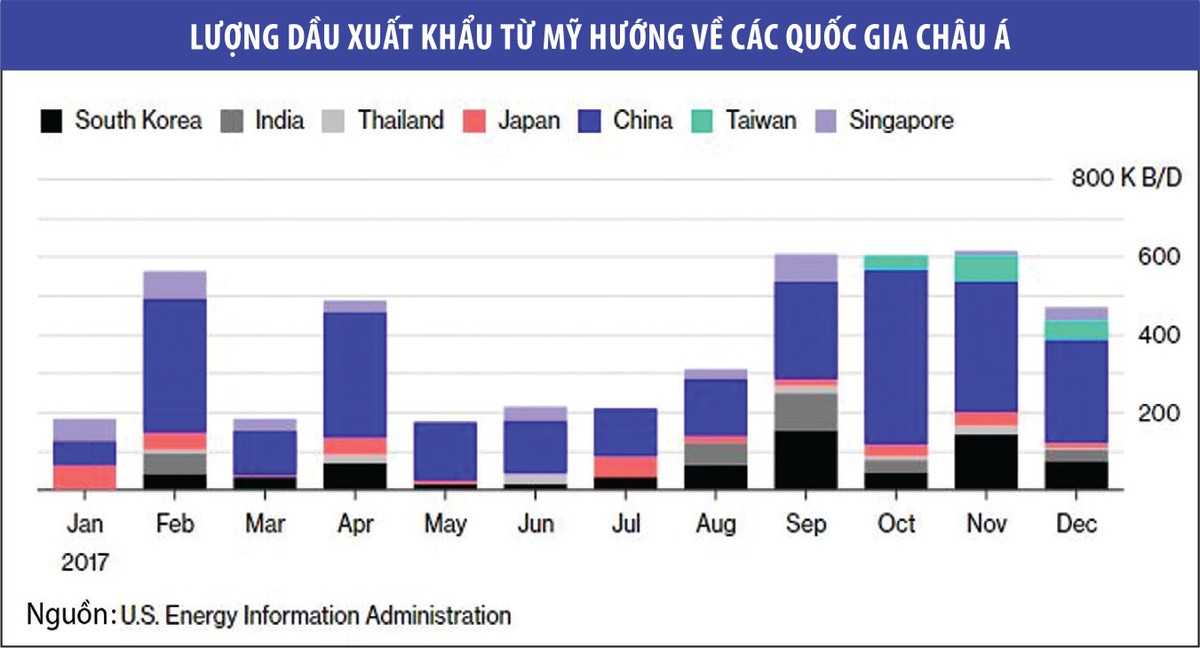 Trong 6 tháng qua, Mỹ xuất khẩu trung bình 1,5 triệu thùng/ngày, gần gấp đôi so với giai đoạn 6 tháng trước đó, theo thông tin từ Cơ quan Quản lý thông tin năng lượng (EIA). Trong bối cảnh sản lượng dầu đầu ra tại Mỹ tăng trưởng, đa phần lượng dầu xuất khẩu đều hướng tới châu Á – thị trường truyền thống của các nhà sản xuất dầu mỏ Trung Đông.
