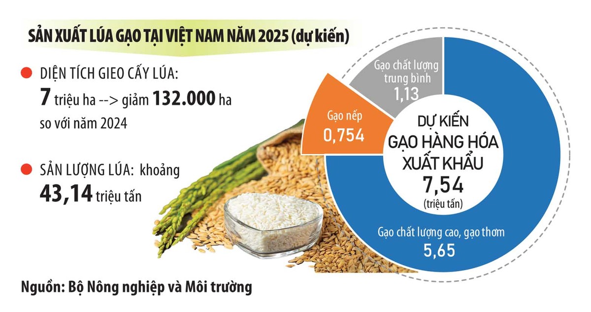 Sau khi đạt kỷ lục xuất khẩu 9 triệu tấn gạo (trị giá gần 5,8 tỷ USD) trong năm 2024, ngành gạo đối mặt với đà suy giảm của giá xuất khẩu, do ảnh hưởng từ chính sách thương mại gạo của Ấn Độ. Nước này cho phép xuất khẩu trở lại sau hơn 1 năm tạm dừng, khiến nguồn cung trên thị trường quốc tế gia tăng, tạo áp lực cạnh tranh cho các nước xuất khẩu khác.