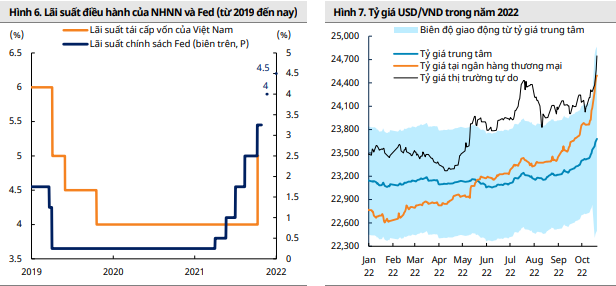 Các chuyên gia quan sát, tính đến ngày 19/10, tỷ giá VND/USD đã tăng khoảng 3,6% so với tháng trước và 7,8% so với đầu năm, nguyên nhân do Fed tăng lãi suất và đồng USD tăng giá; xuất khẩu chậm lại gần đây, đặc biệt là khi các thị trường xuất khẩu chính của Việt Nam đang đối mặt với nguy cơ suy thoái.