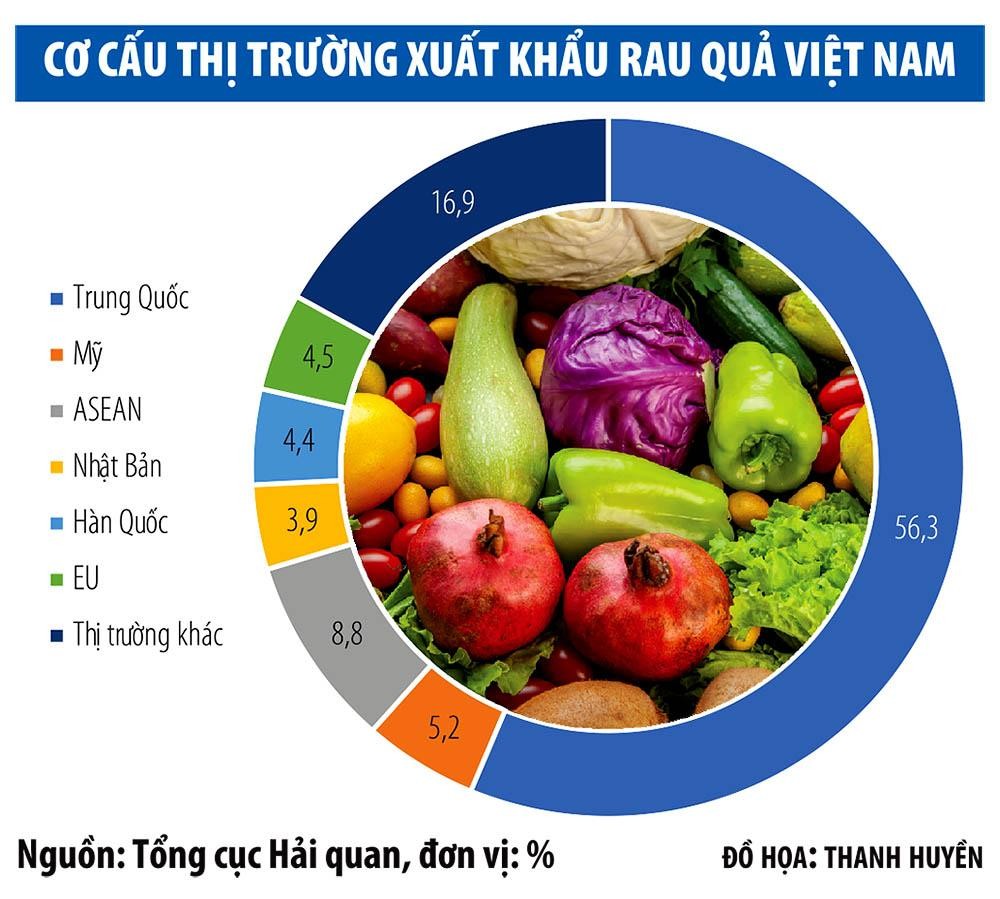Dù vậy, Trung Quốc vẫn là thị trường tiêu thụ lớn nhất, chiếm tới 56% tổng giá trị xuất khẩu rau quả của Việt Nam. 6 tháng đầu năm, xuất khẩu rau quả sang Trung Quốc đạt trên 1,25 tỷ USD, tăng 16,2% so với cùng kỳ năm 2020.