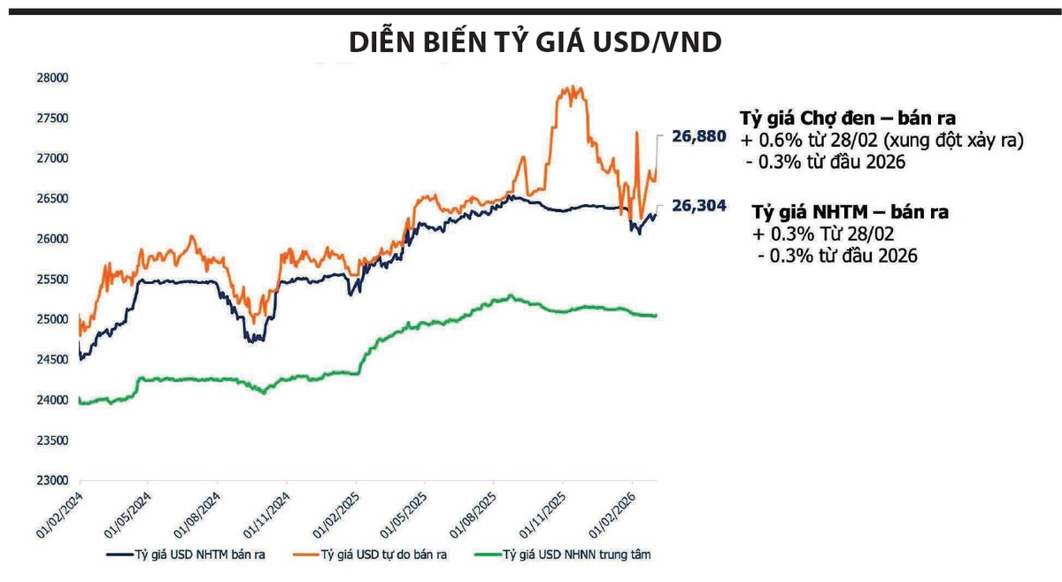 Đồng thời, áp lực lên tỷ giá cũng sẽ trở nên căng thẳng hơn. Trong môi trường bất ổn, đồng USD thường được xem là nơi trú ẩn an toàn, khiến chỉ số DXY tiếp tục tăng mạnh. Ngân hàng Nhà nước có thể buộc phải can thiệp bằng cách bán ra dự trữ ngoại hối - một biện pháp tốn kém và có giới hạn.